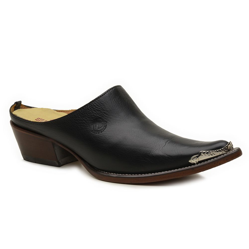 - Couro Floater Preto com Biqueira Prata